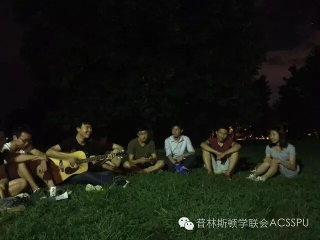 吉他音乐节于晚上八点准时开始。夏日的炎热渐渐褪去,点点繁星和昏暗的灯光点缀着普林斯顿宁静祥和的傍晚,时而清脆悠扬时而浑厚饱满的琴声更为之增添了一丝温柔浪漫的气息。伴着“ACSSPU的好伙伴”郑漫庄的一曲《奇妙能力歌》弹唱,原本还有些嘈杂的听众顿时安静下来,深深被带入其中,音乐节也拉开序幕。随后,三年级博士生彭映石和孙赫纷纷献唱,各演唱两首歌曲。《Young for you》,《平凡之路》,《单身情歌》以及《夜空中最亮的星》,曲曲经典,耳熟能详。除了吉他弹唱外,二年级博士生宋博锴为大家表演了两首高难度的指弹《竹炭铃》和《The Sprinter》,尽显吉他自身魅力。
